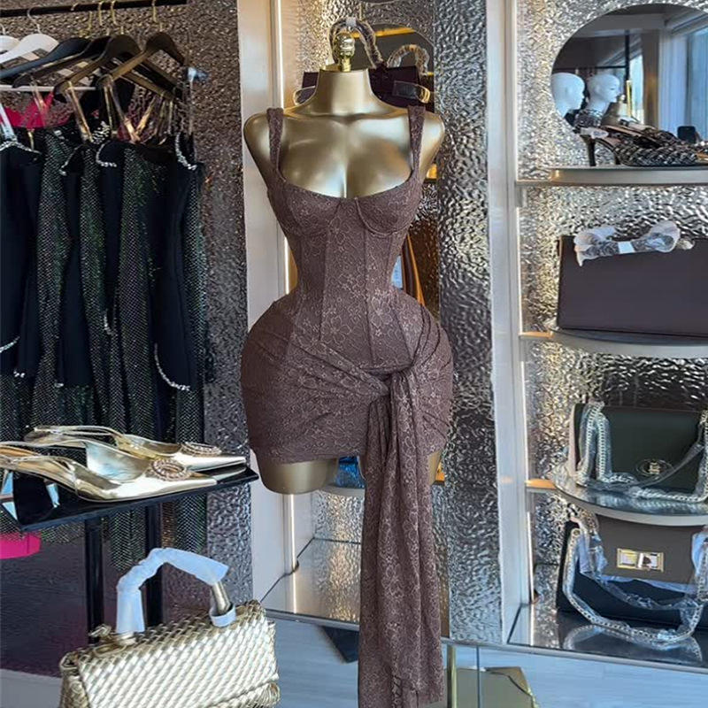 High-End Clothing Manufacturers' Customr Women's Clothing 2026New Casual Anti-Static Sexy Elegant Solid Color Lace Slim-Fit High
