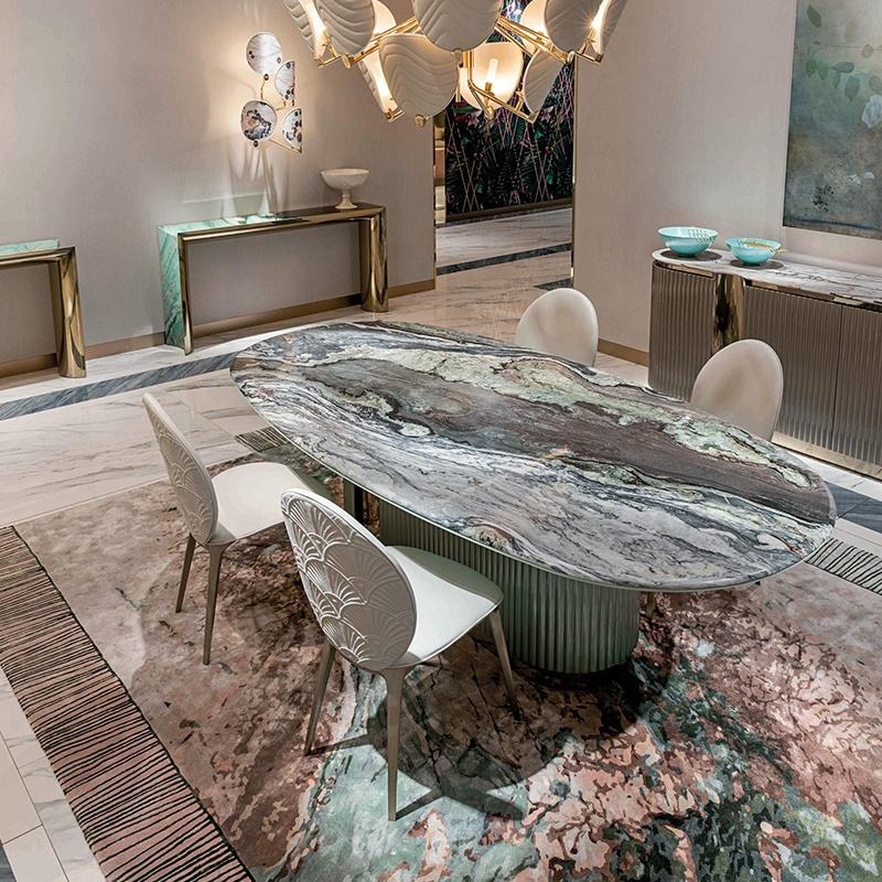 Tavolo da pranzo in granito Pandora di marmo ovale villa di lusso italiano verde chiaro di design di fascia alta leonardo