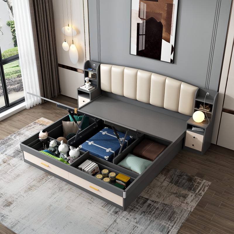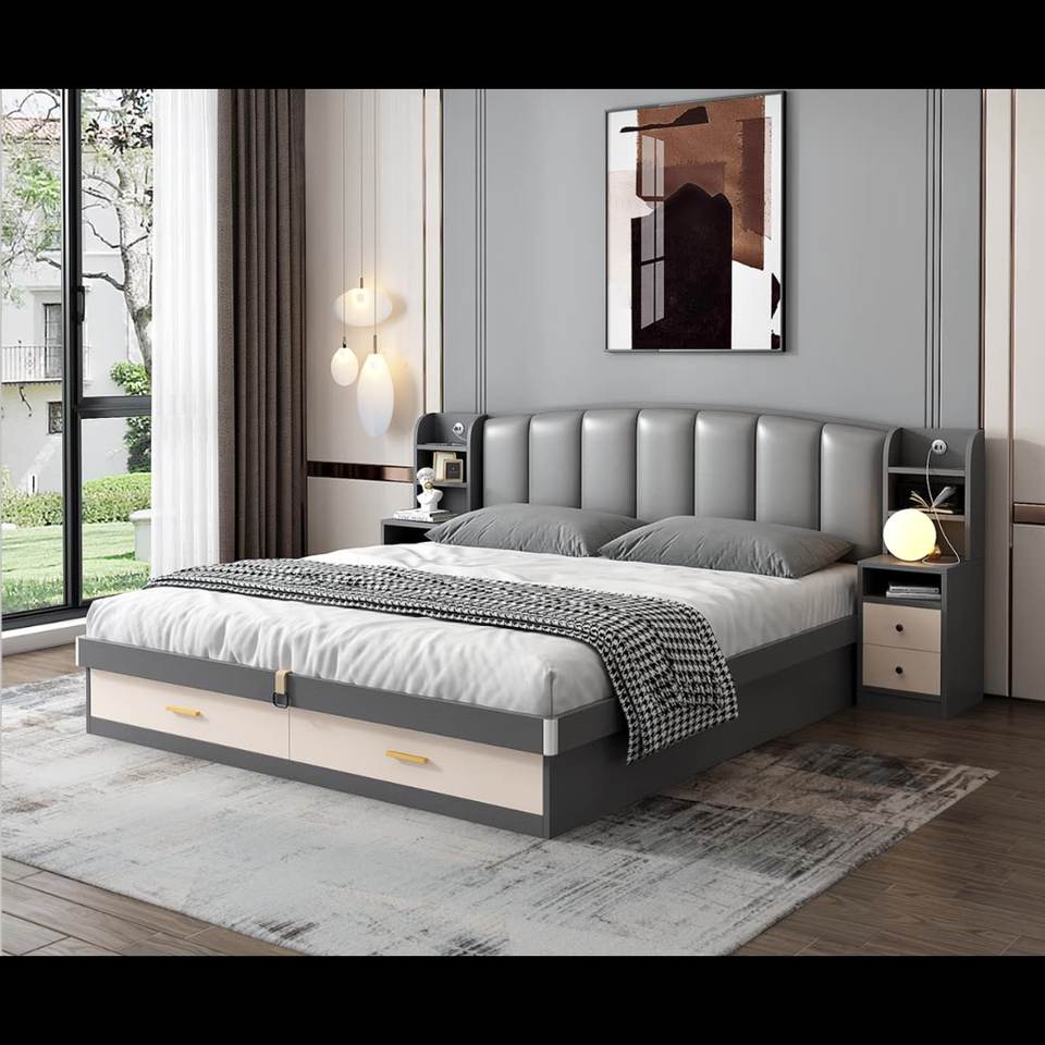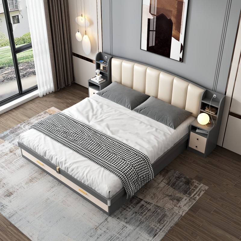 High-End Double Bed Upholstered Headboard for Cozy Comfort Modern Panel Structure for Contemporary Look