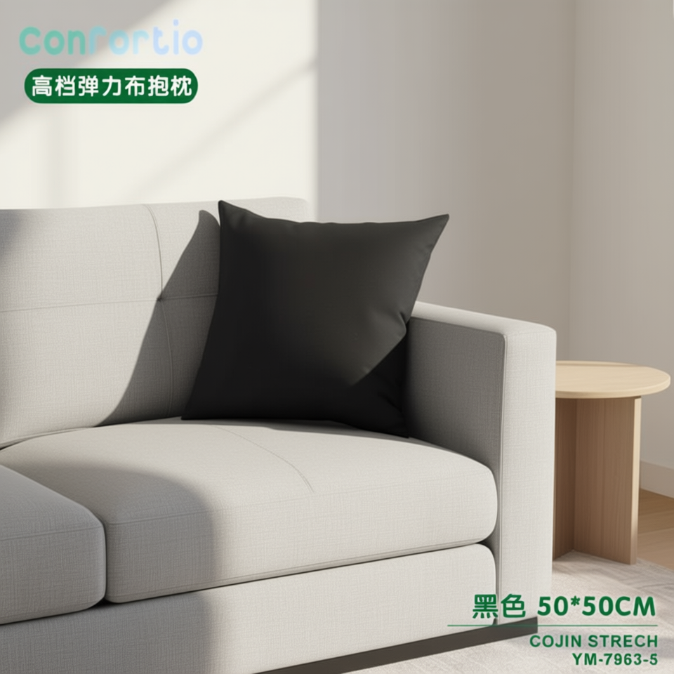 High-End Elastic Fabric Cojin Stretch Black 50*50 Luxury Seat Cushion & Pillow
