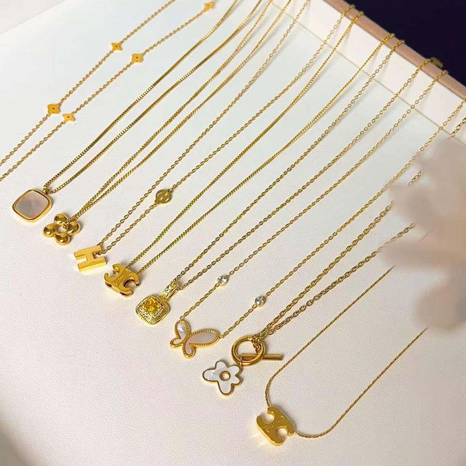 High-End Elegant Women's Titanium Steel Necklace Niche Design for Commuting Real Gold Plated Clavicle Chain Trendy Versatile