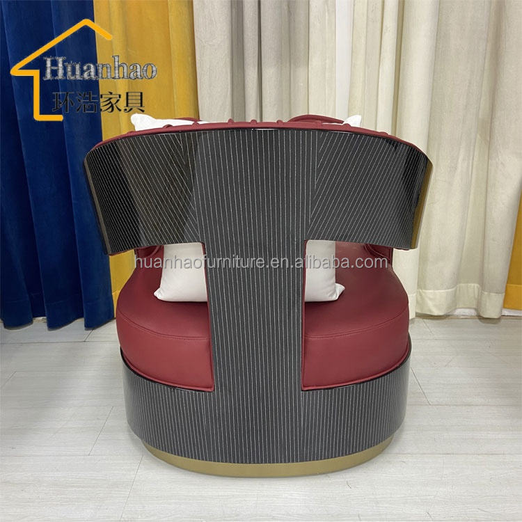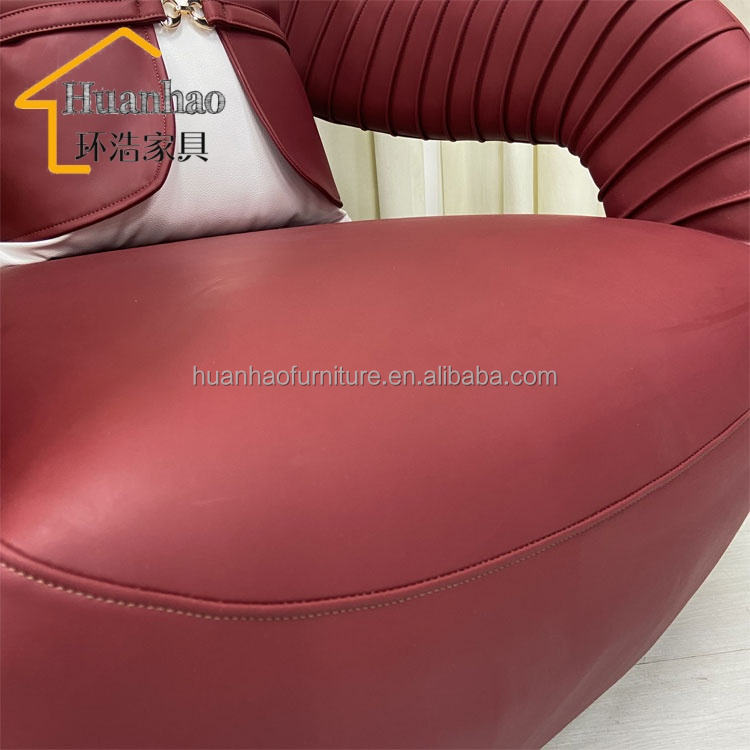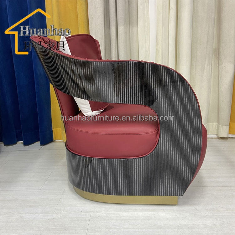 High End European Design Morden Relax Leisure Chair Red Genuine Leather Living Room Chair OEM Wooden Trim Lounge Accent Armchair