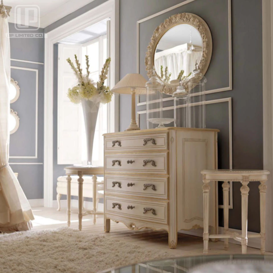High End French Provincial Bedroom Furniture Beige Bed Frame Rectangle Princess Bed With Curve Bed Head