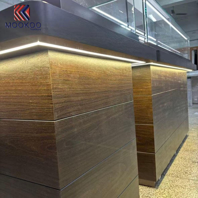 Vetrina per gioielli in vetro di fascia alta con cassetti chiudibili a chiave-vetrina in legno per gioielleria di lusso