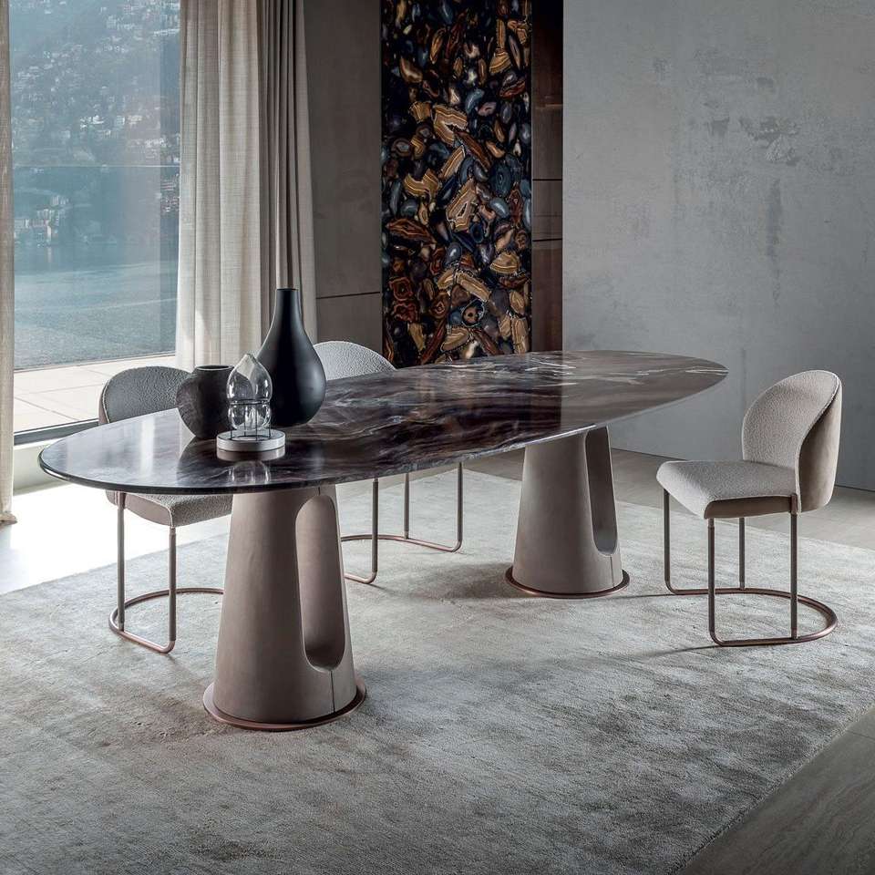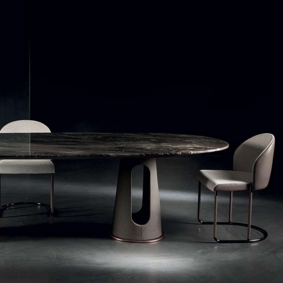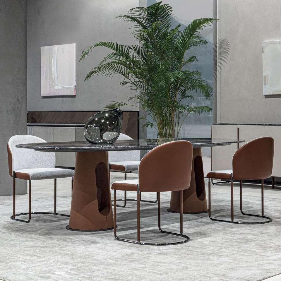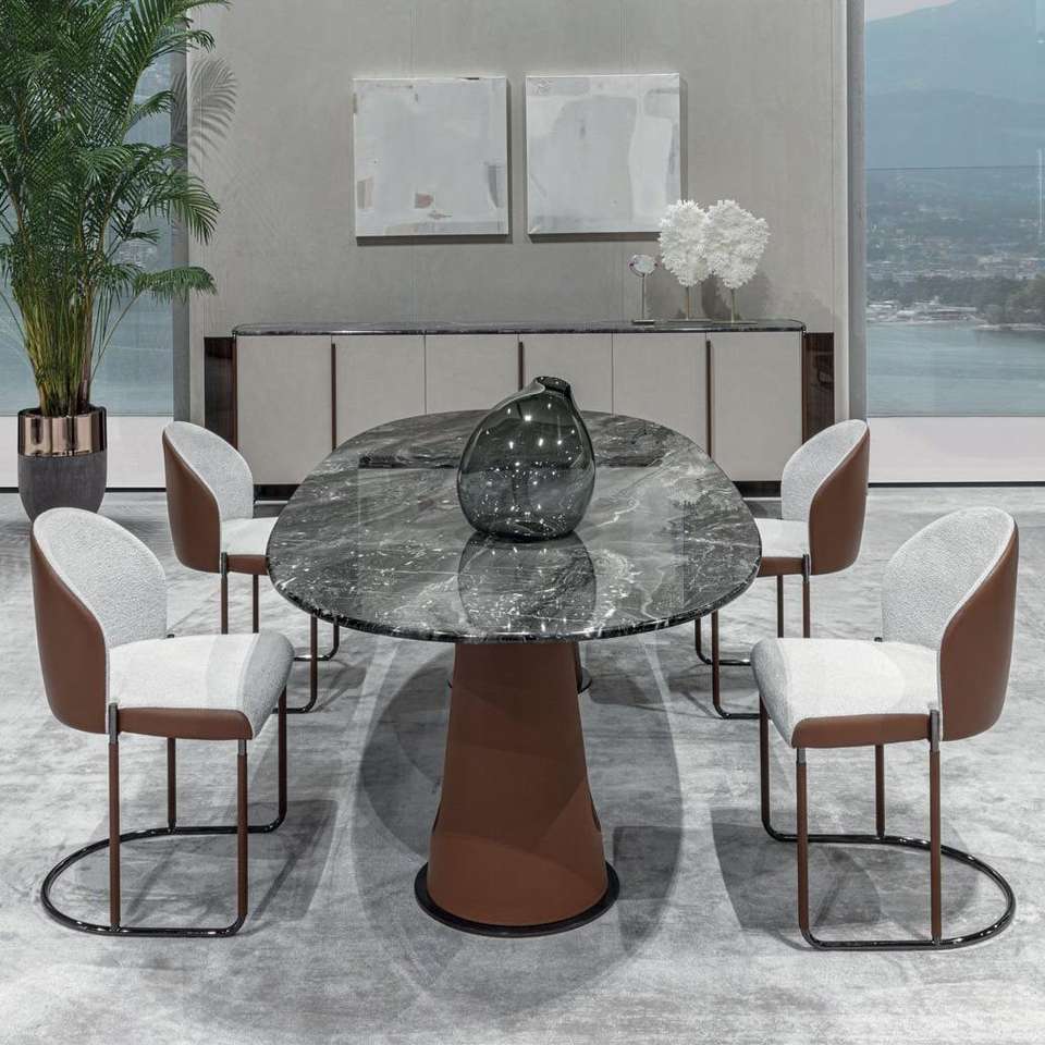 Set Tavolo da Pranzo Ovale in Marmo Naturale di Lusso Italiano di Alta Gamma con 4 Sedie Personalizzabili, Arredamento Domestico Stabile