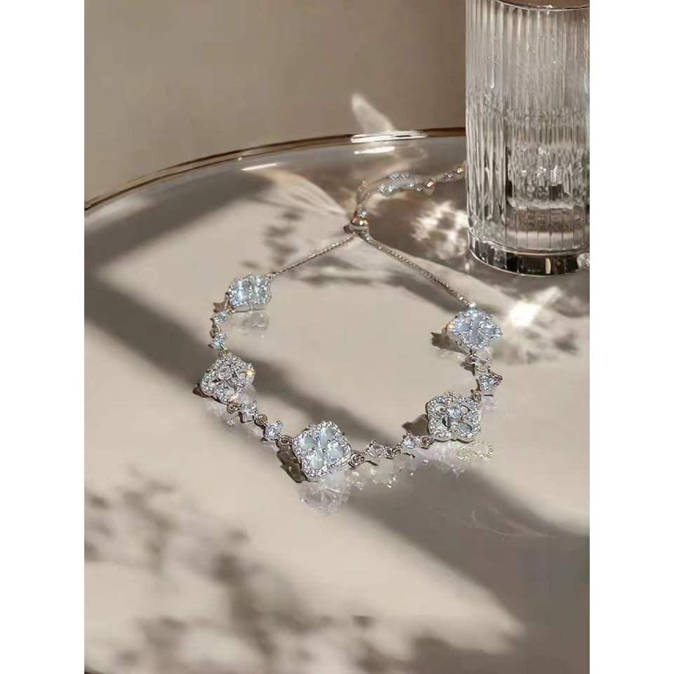 High-End Luxury Four-Petaled Flower Zircon Bracelet Cross-Border Popular Fine Charm Accessory with Light Luxury Temperament