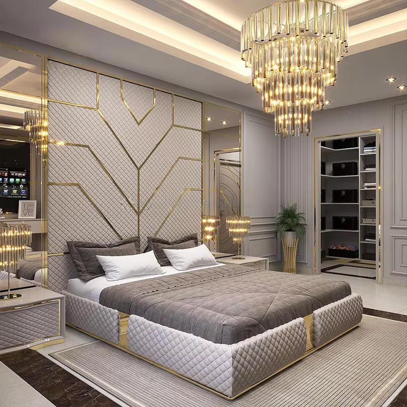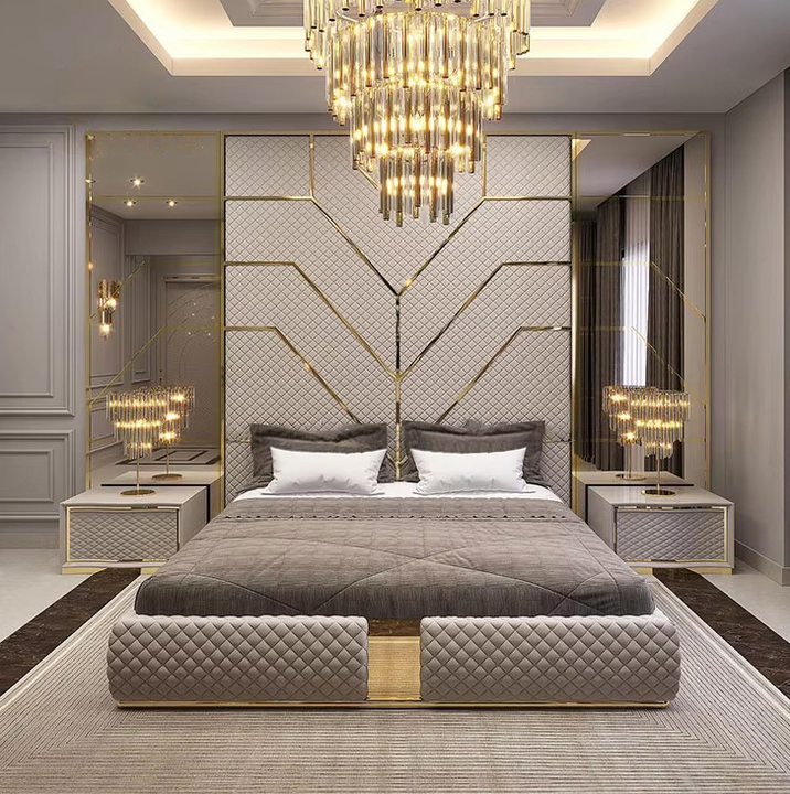 Pannelli di Sfondo di Lusso per Letto King Size, Set Camera da Letto di Alta Gamma, Mobili Italiani per Camera da Letto, Letto Imbottito in Tessuto