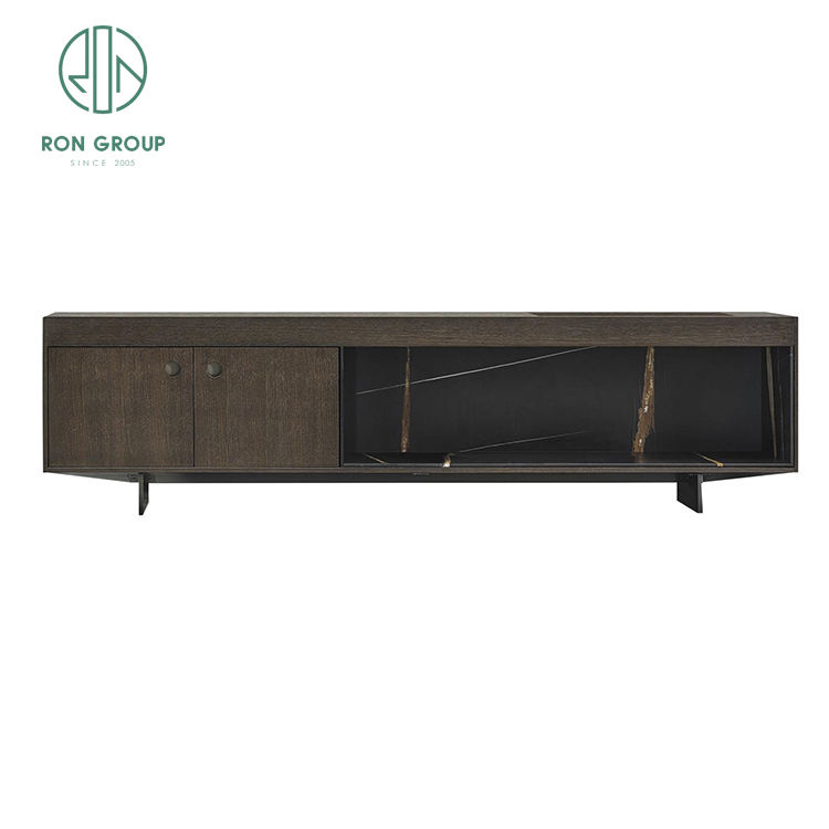 High-End di lusso TV set ripiano aperto 2 cassetti quadrato in legno massello in acciaio inox Base di alta qualità per la casa soggiorno