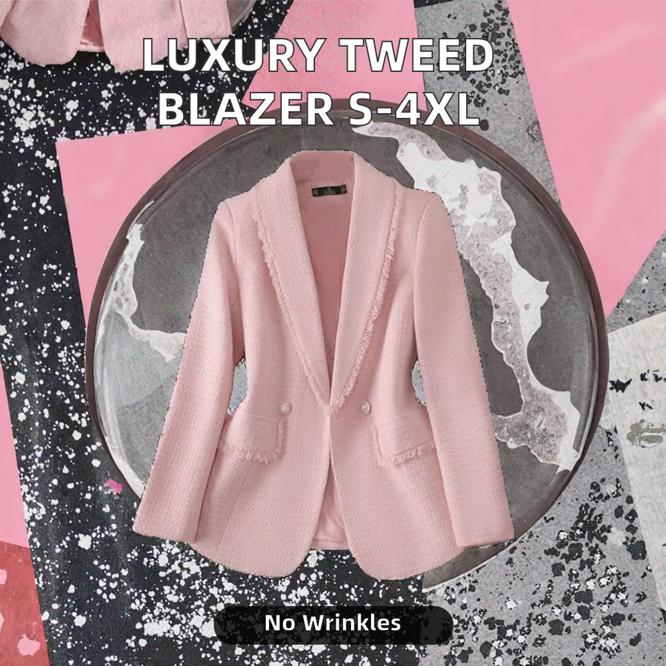 High-End Luxury Women's Blazer Single Button Closure Outerwear Rough Tweed Fabric Solid Pattern Jacket for Party Button