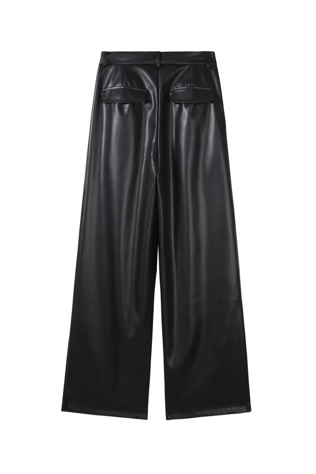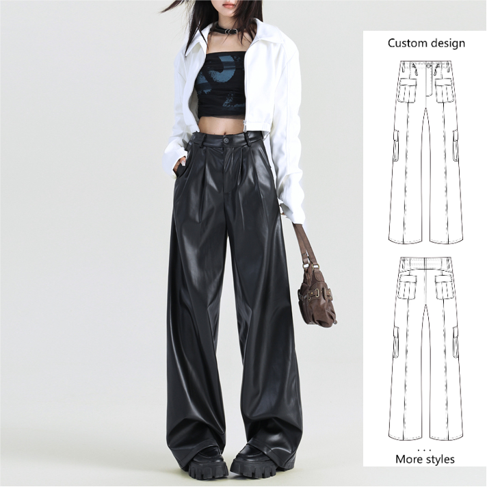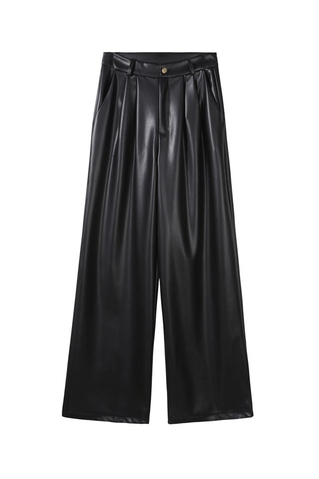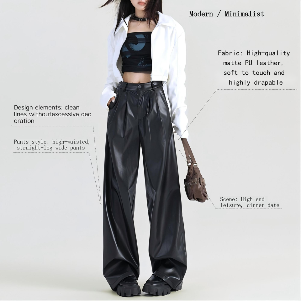 High-End Maillard Leather Pants for Women Loose Wide Leg High Waist Flat Front Straight Draped PU Leather Floor-Length Style
