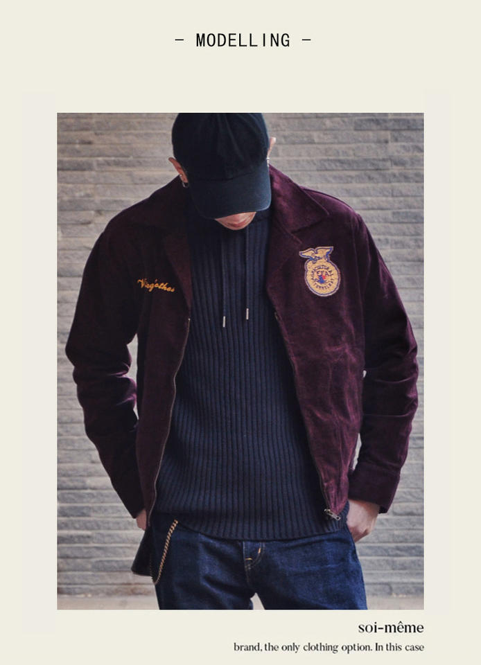 Giacca in Velluto a Coste di Alta Qualità per Uomo, Stile Retrò Americano, Maniche Lunghe, Ricamata, 100% Cotone, Associazione dei Contadini Giovanile