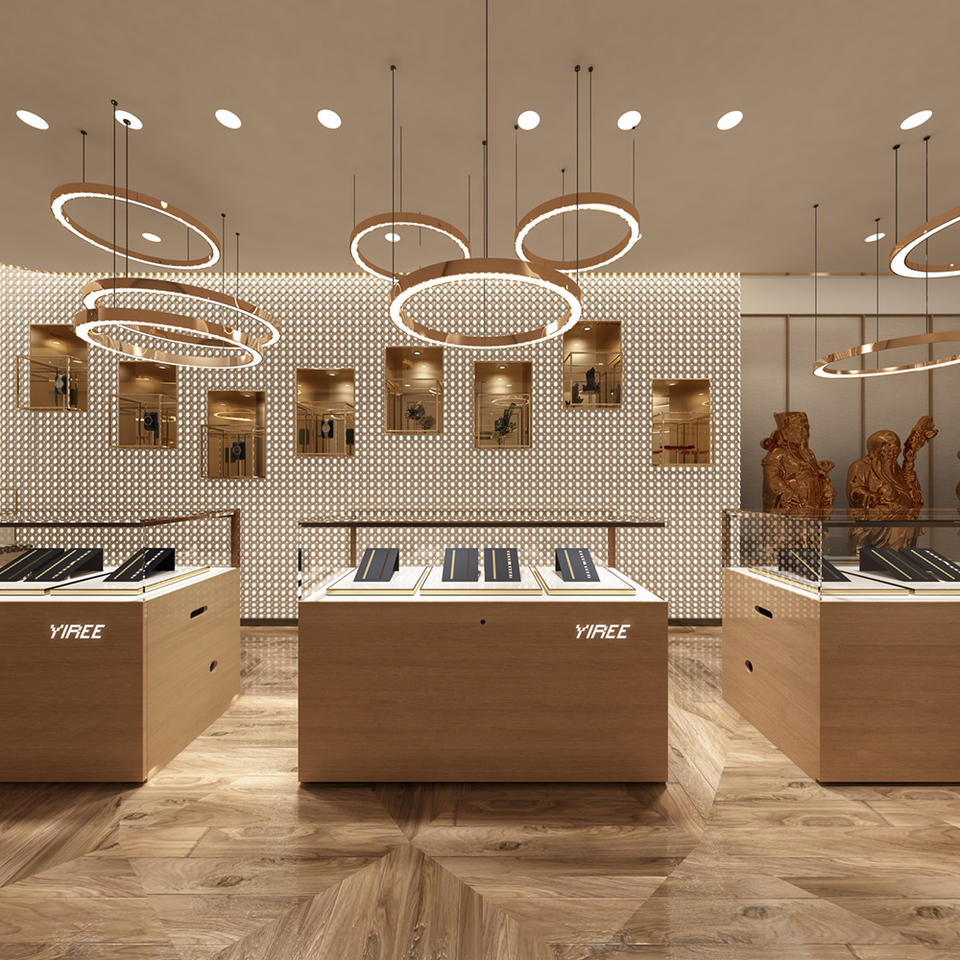 Di fascia alta moderna top ha condotto le strisce di design in legno vetrina di vetro dei monili vetrina per negozio di marca