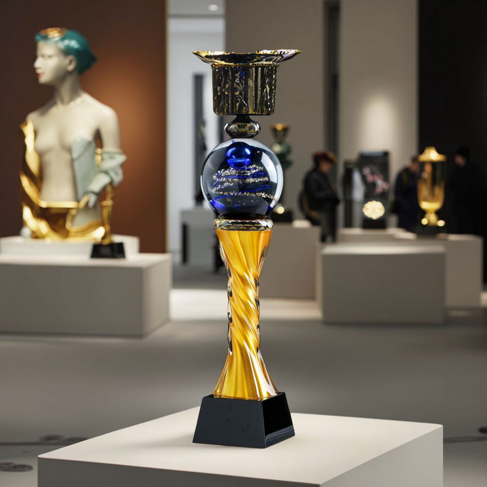 Trofei di Alta Gamma Moderni e Tradizionali in Cristallo Traslucido Smaltato Lucidato con Serigrafia - Edizione Speciale Champions League - Offerta Imperdibile