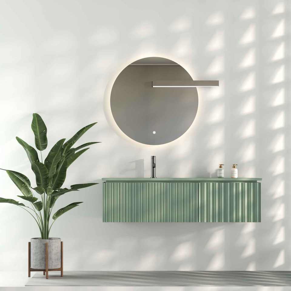 Set di Mobili da Bagno di Alta Gamma per Villa e Hotel Moderni, Mobile Lavabo 1200mm Verde Fumo Laccato con Illuminazione LED Touch Resistente all'Acqua