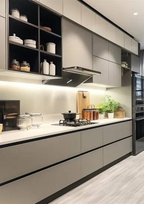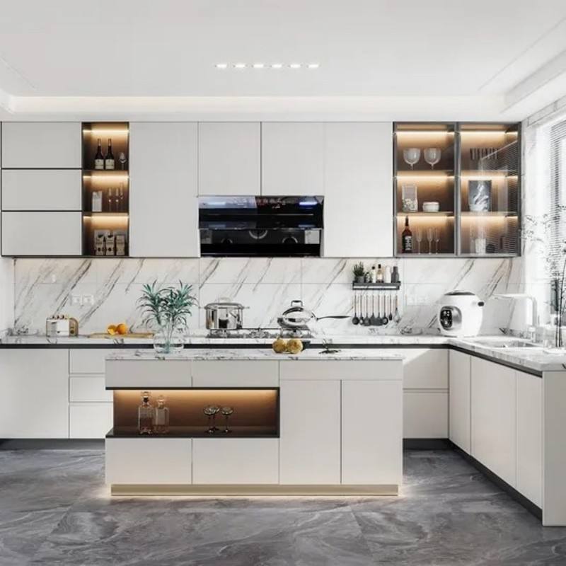 Set di Mobili da Cucina di Alta Gamma con Mensole Aperte per Villa, Penthouse e Showroom