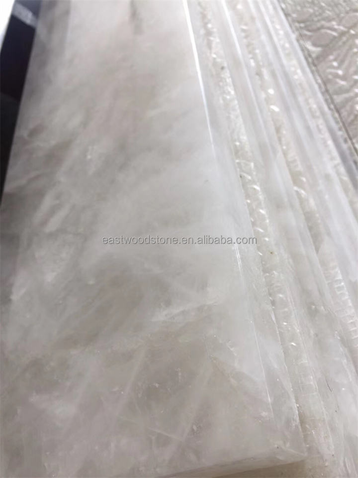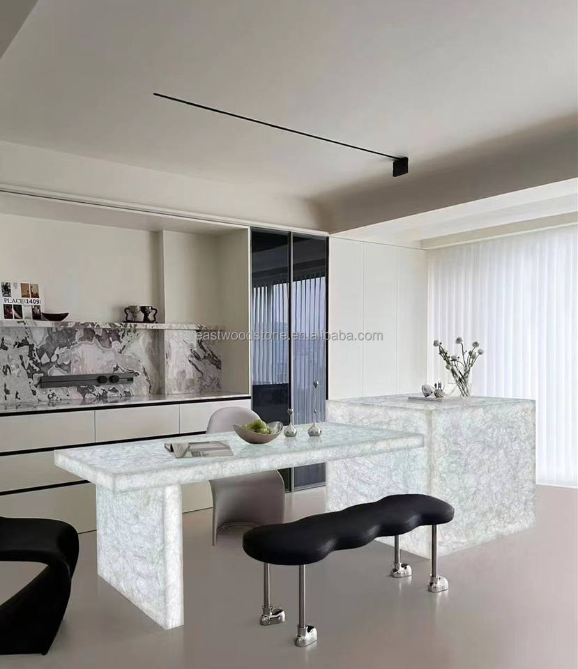 Parete Decorativa di Alta Gamma in Cristallo Naturale Semi-Prezioso e Agata con Retroilluminazione e Piani di Lavoro Traslucidi per Bagno