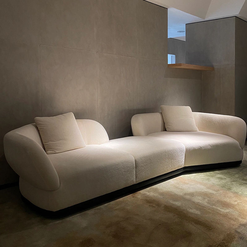 High End Villa Sofa Home Furniture Couches White Chenille Fabric Peninsula Sofa Sectional Living Room Sofas