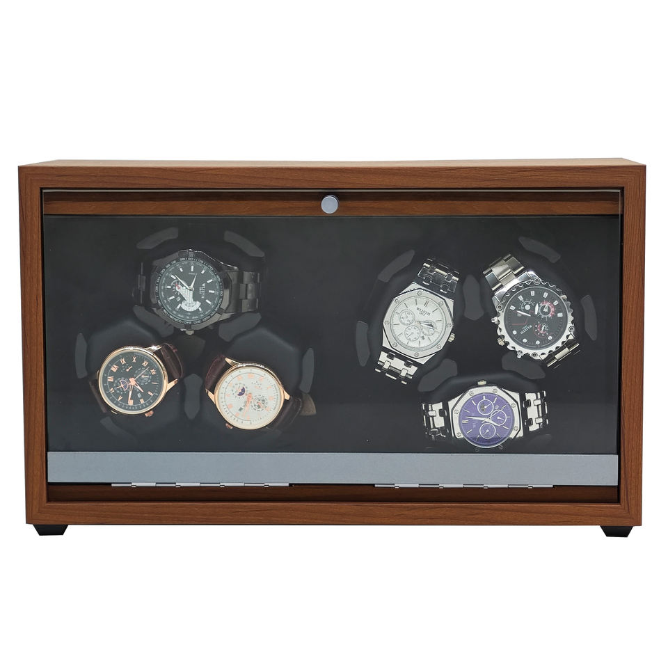 Scatola del Tempo Girevole di Lusso in Legno di Noce per 6 Orologi con Sportello in Vetro e Motore Silenzioso