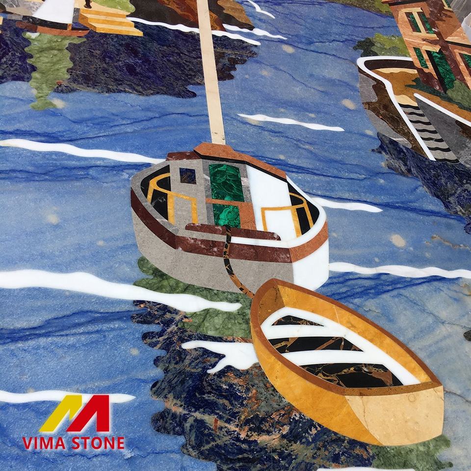 Design di fascia alta a getto d'acqua in marmo medaglione di piastrelle di venezia motivo intarsio in marmo per parete sfondo decorativo arte
