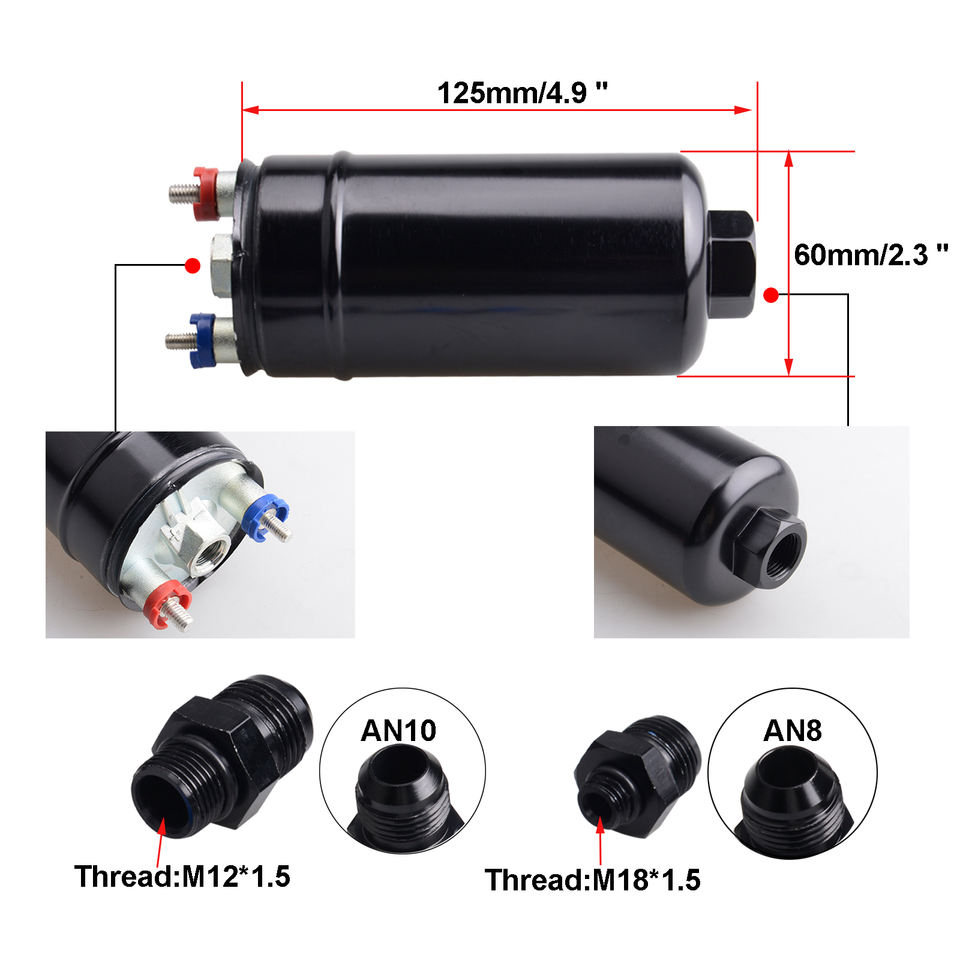 Pompa Carburante Esterna Inline EFI ad Alto Flusso 380LPH Tipo 044 Compatibile con E85 Etanolo Ingresso AN10 Uscita AN8