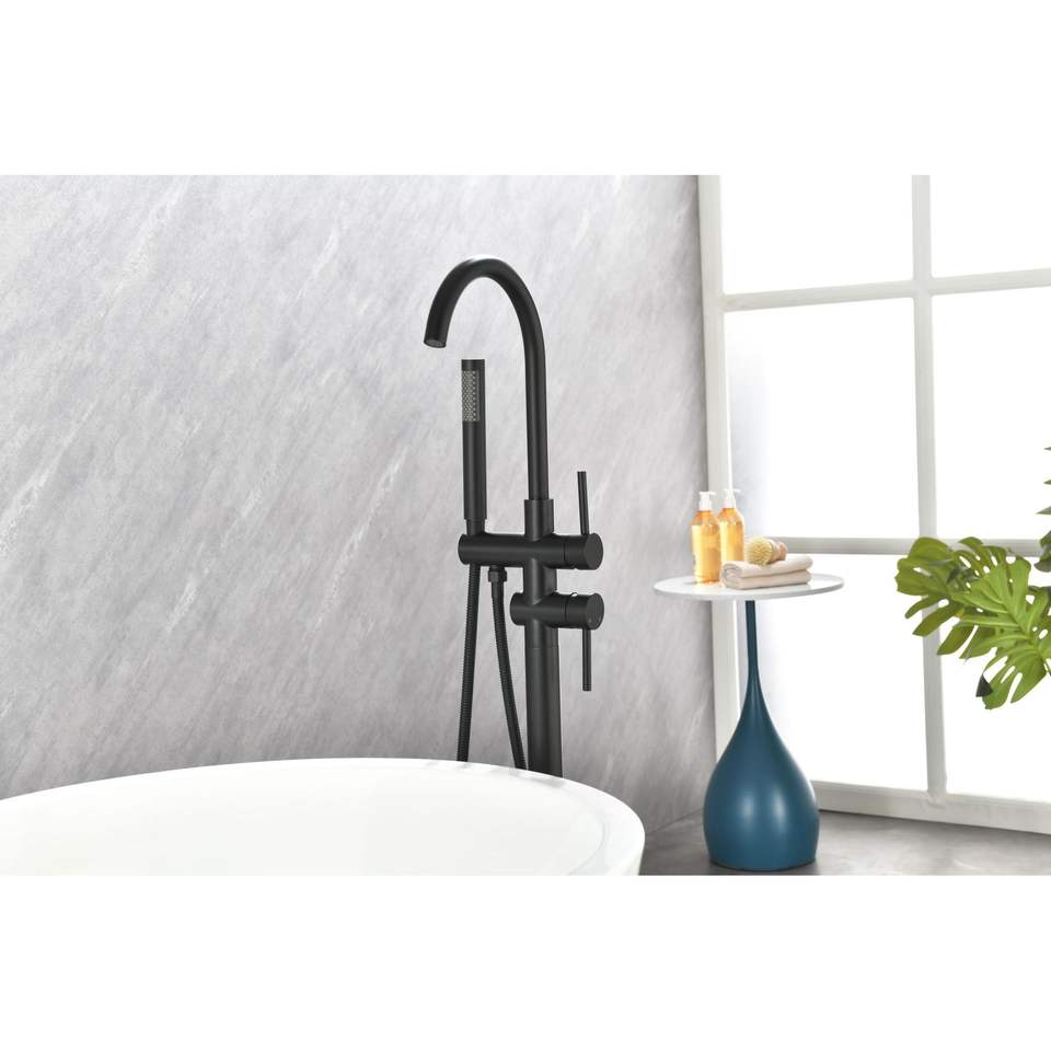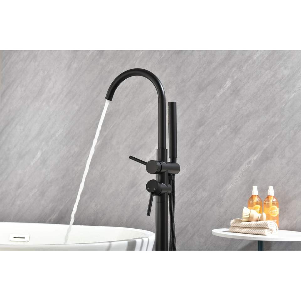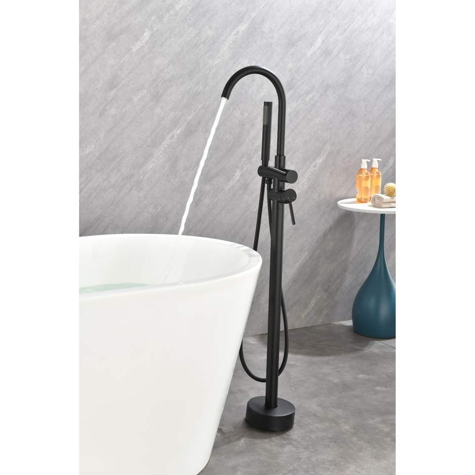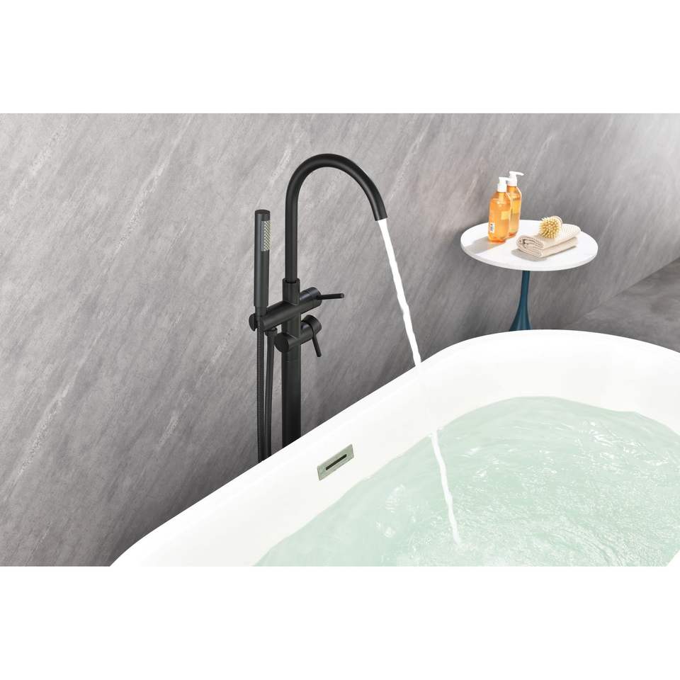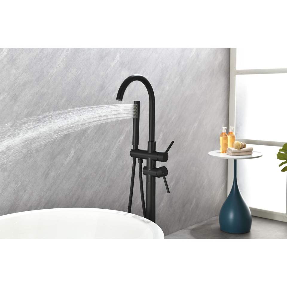 Rubinetto per vasca da bagno a pavimento ad alta portata con doccetta e beccuccio girevole - Rubinetti per vasca e doccia a pavimento