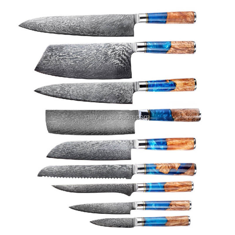 High-Grade VG10 Damascus Steel Santoku Cleaver Set Japanese Chef Utility for Steak Bread Paring Boning-Carbon Steel Metal