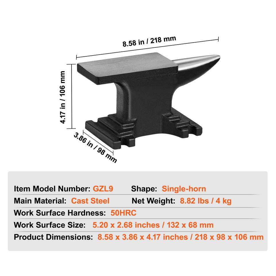 Incudine a corno singolo in acciaio fuso ad alta durezza 8.8 libbre, strumento robusto da fabbro con base compatta e stabile, nuovo design