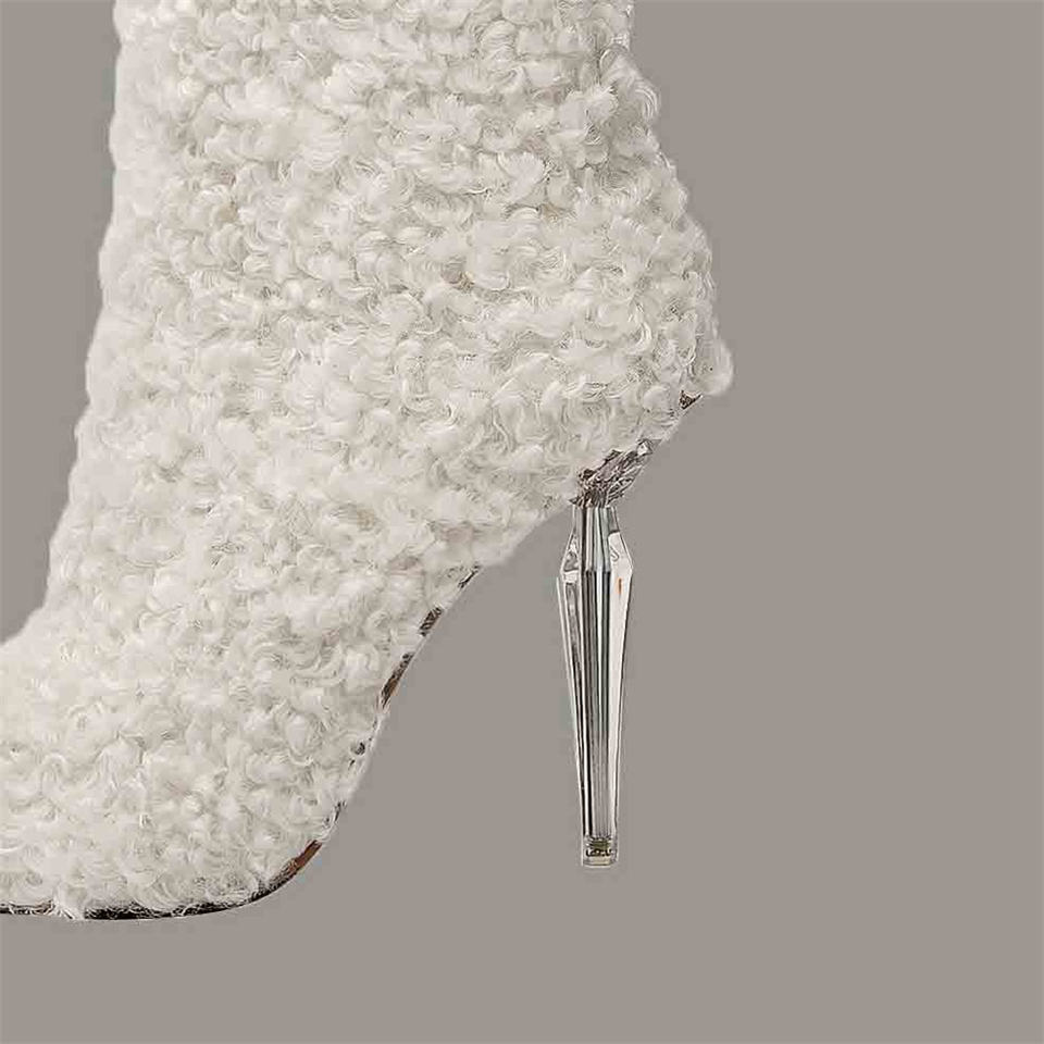 Tacco alto peloso peluche stivali fucsia pelliccia lunga soffice al ginocchio donna invernale caldo rosa caldo di alta qualità in pelliccia sintetica tinta unita