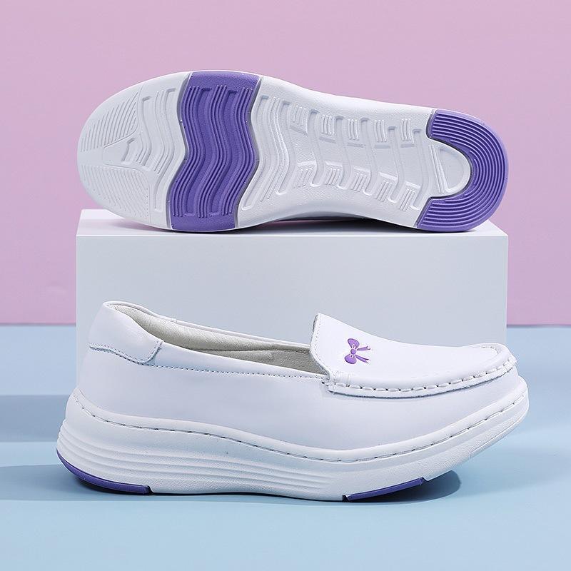 Scarpe da ginnastica in pelle ortopedica con tacco alto da ospedale comode calzature bianche da allattamento