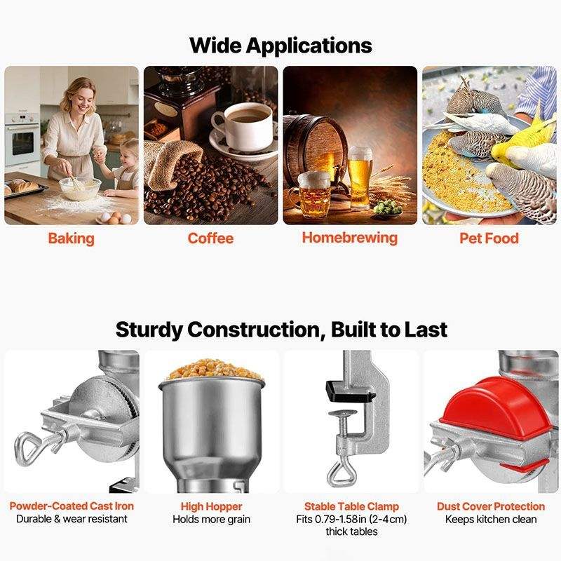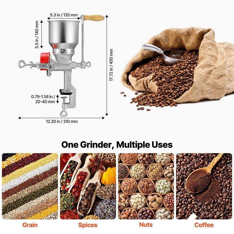 Macinacaffè Manuale High Hopper per Cereali, Spezie, Chicchi di Caffè e Noci