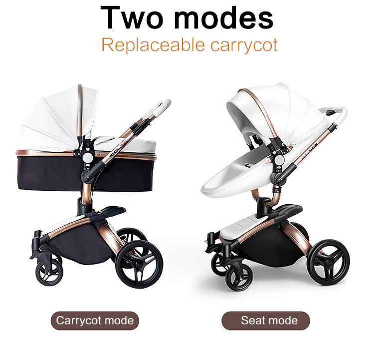 Passeggino a seduta alta 4-in-1 ammortizzato e reversibile, seduta reclinabile pieghevole con seggiolino auto per bambini