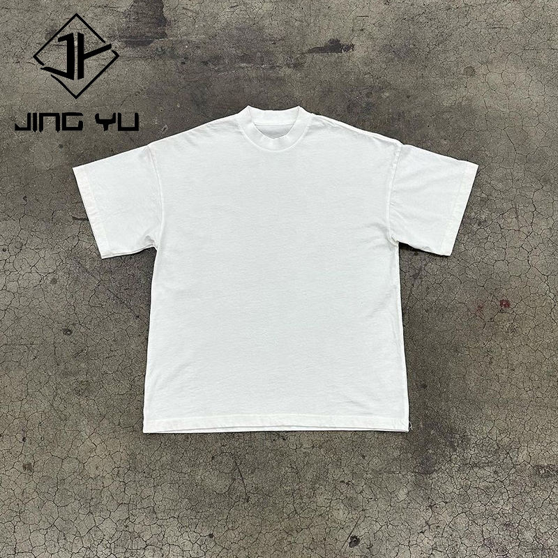 High Mock Neck Collar Thick Pocket Tshirt Custom 100% Cotton Tee T-shirt Oversized Heavyweight Plain White t Shirt for Men