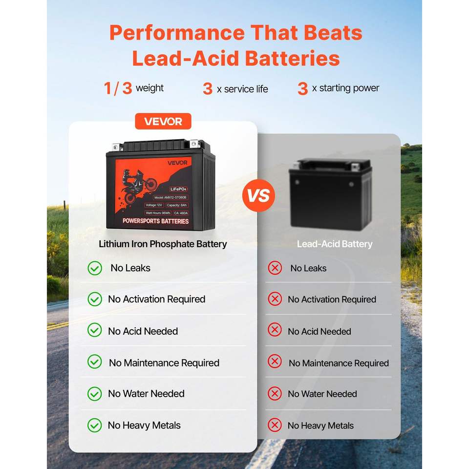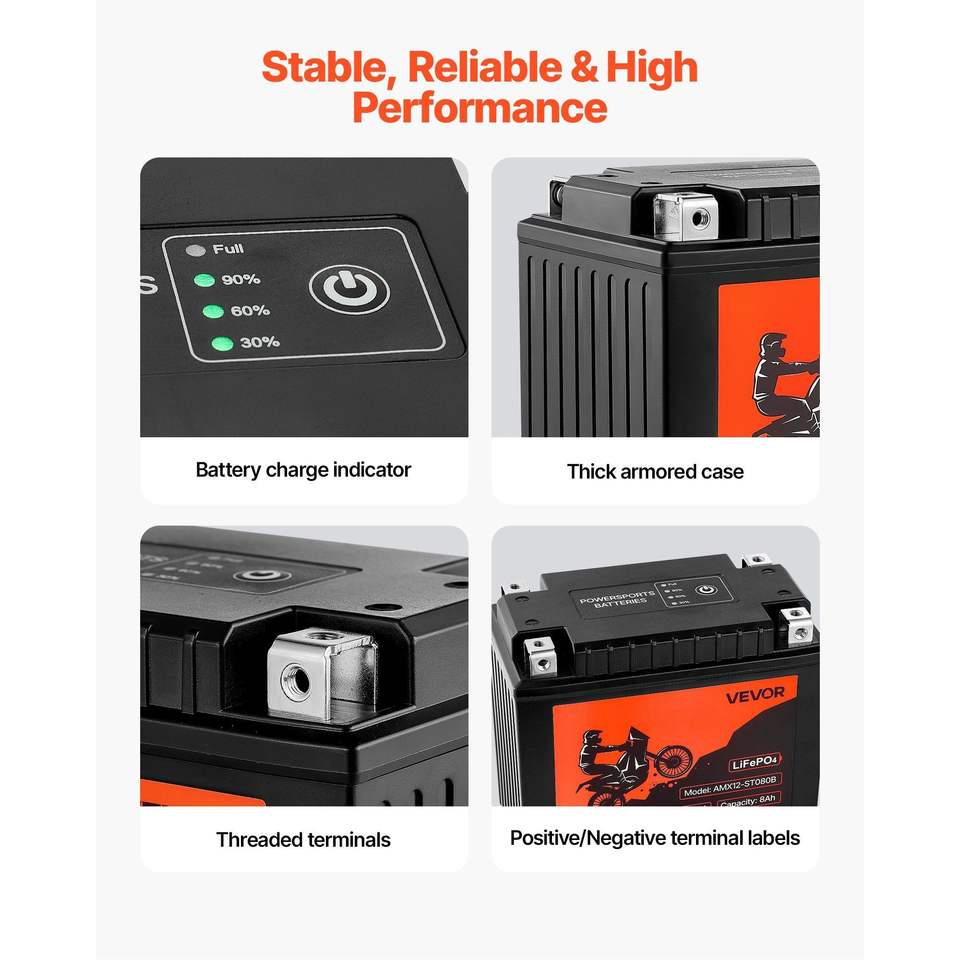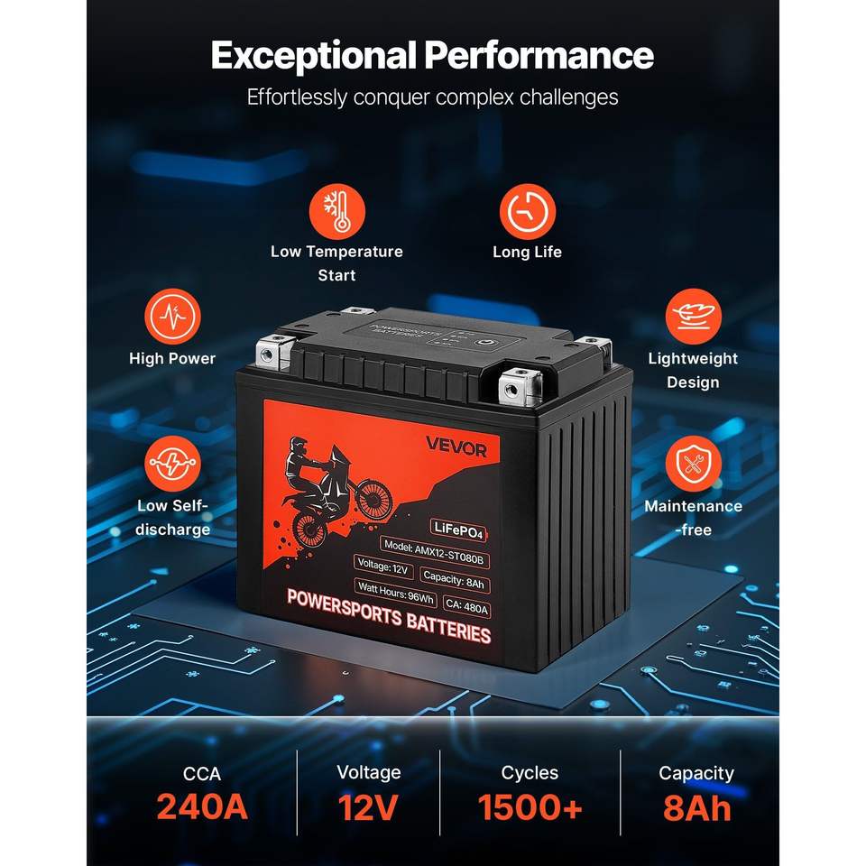 High Performance 12V 8Ah YTX12-BS Motorcycle Battery for Powersports