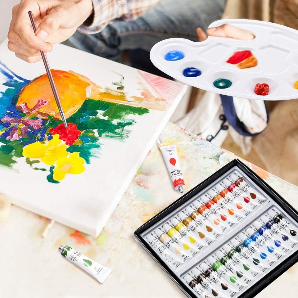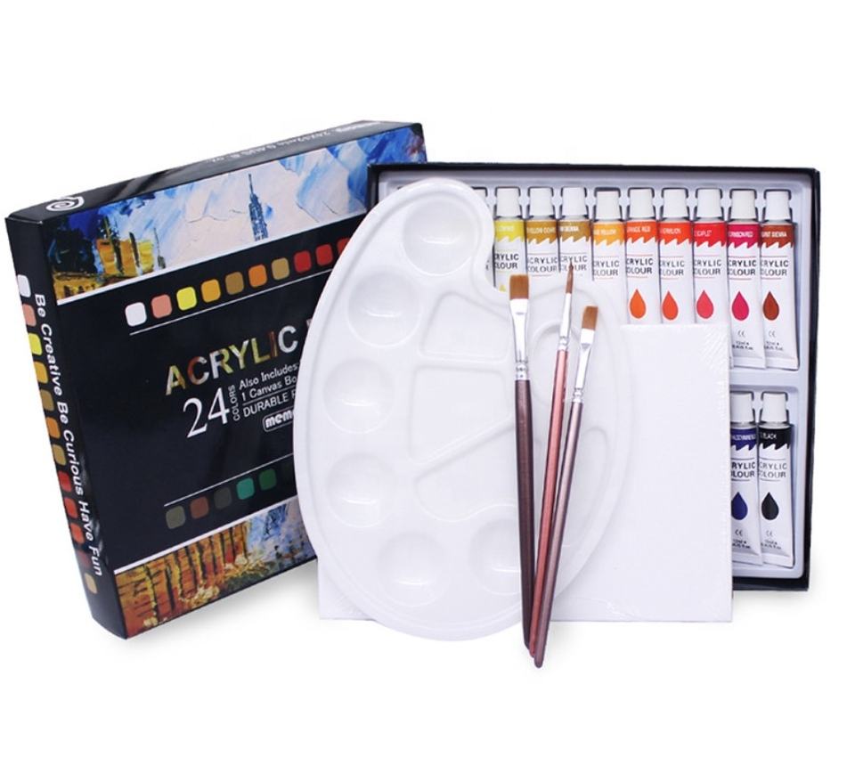 High Pigment Acrylic Paint Set 24 Colors with Canvas, Palette, Painting Brushes Easy Acrylic Painting for Beginners, Artist
