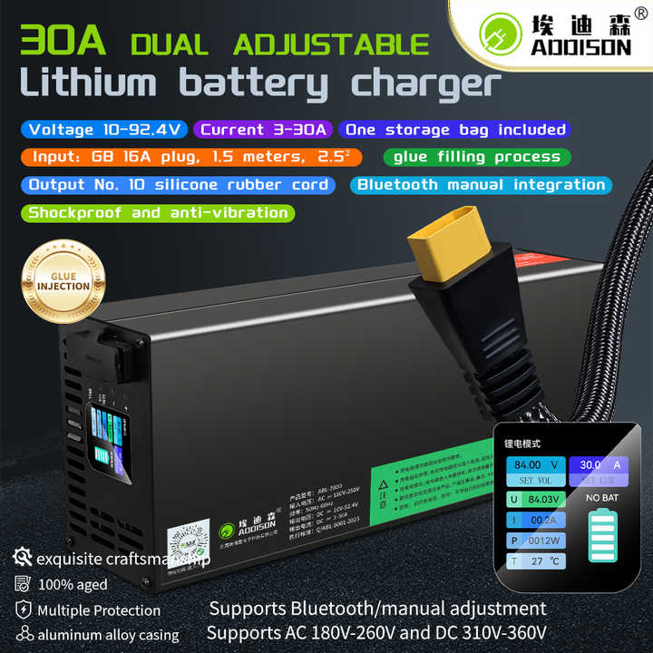 High Power 3000w Lithium Charger with Variable Volt and Amp 10V-92.4V 2A-30A Electric Scooter Motorcycle Bike Battery Charger