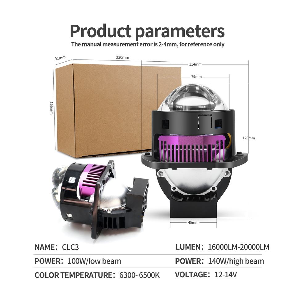 Lente Proiettore Bi-Led Laser ad Alta Potenza da 3 Pollici 140W 20000lm, Luce Bianca con Ventola di Raffreddamento, Fari Proiettori Led H4