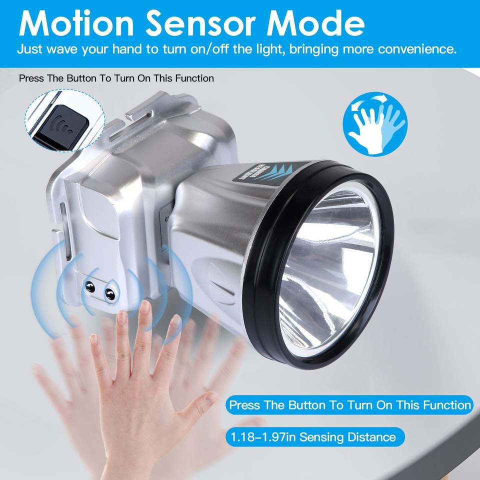 Torcia Frontale Ricaricabile ad Alta Potenza con 3 Modalità di Illuminazione LED e Sensore di Movimento per Pesca, Corsa, Campeggio ed Escursionismo