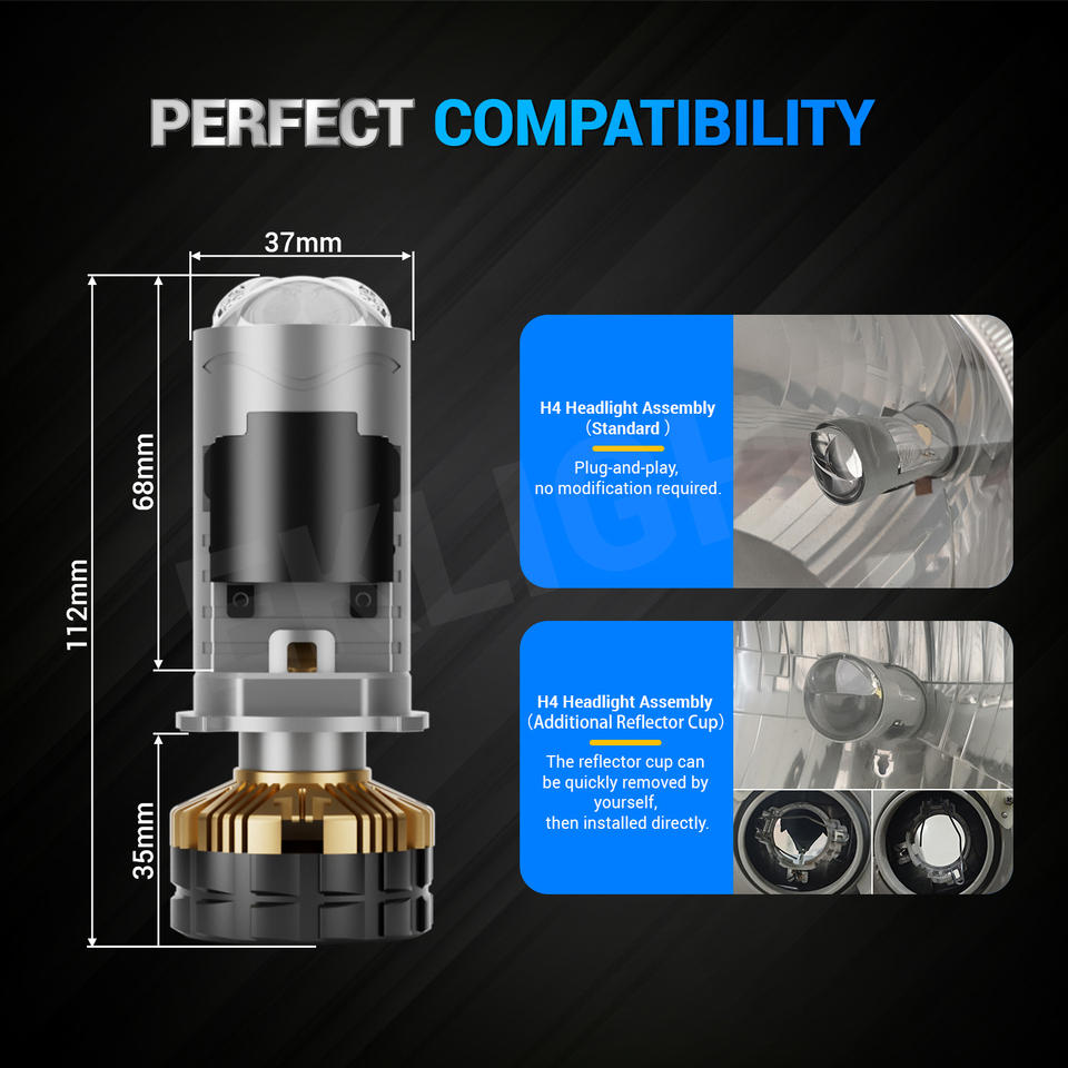 Lampadine LED H4 Universali ad Alta Potenza 12V 140W Mini Proiettore Plug and Play Fascio Alto/Basso per Hilux
