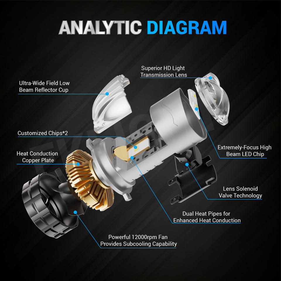 Color Temperature:6000K 6500K White H4 LED Headlight