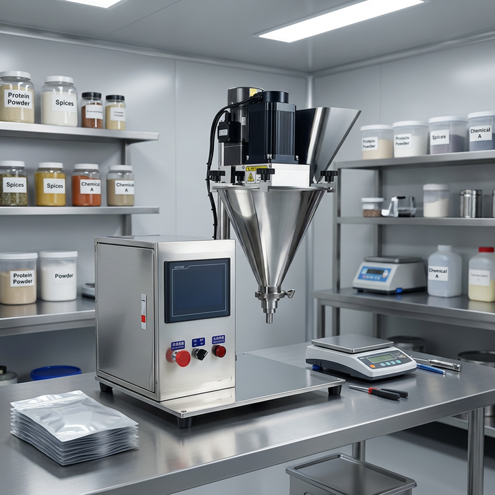 Macchina Dosatrice a Coclea ad Alta Precisione per Polveri, Spezie, Proteine, Farine e Condimenti Secchi, da Tavolo, con Capacità di 0.1g, 0.5g, 1g, 5g, 10g, 50g
