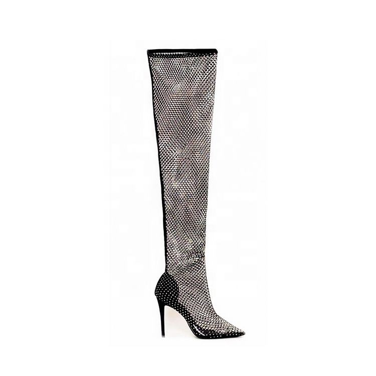 Alto tasso di acquisto sexy PVC strass calze a rete tacchi a spillo per le signore