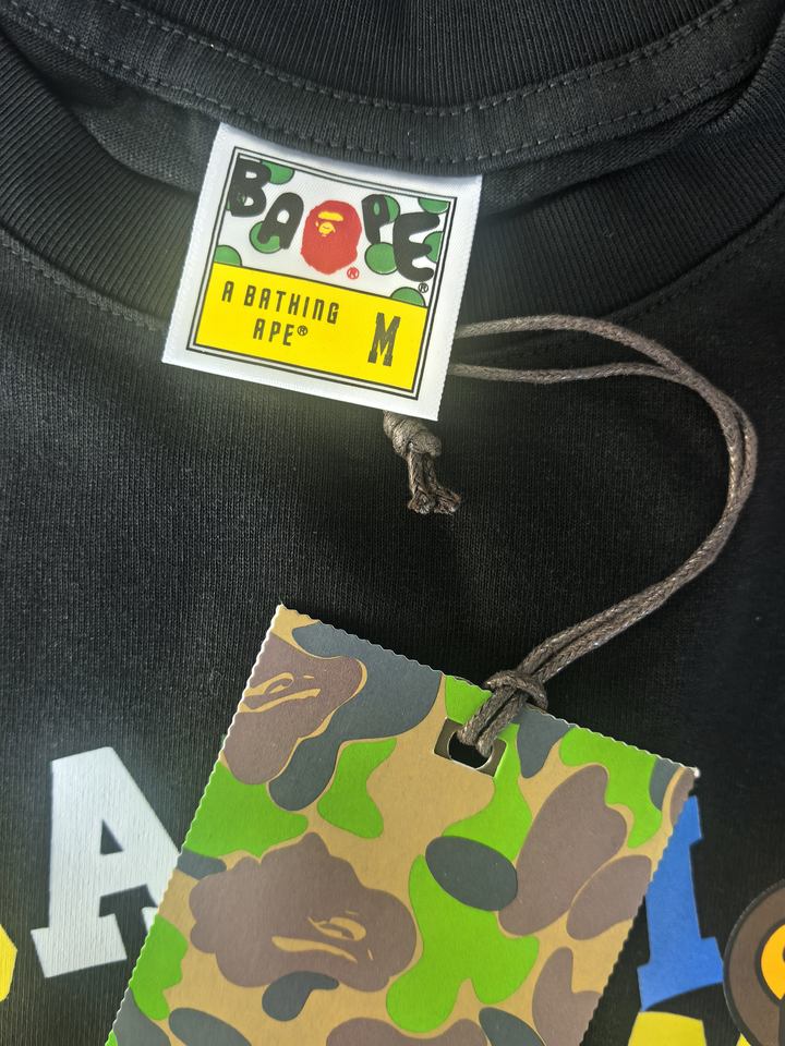 Bapees T-shirt 100% cotone versione 1:1 con stampa laser letter, casual traspirante per uomo, pronta consegna, personalizzabile logo/etichetta/cartellino