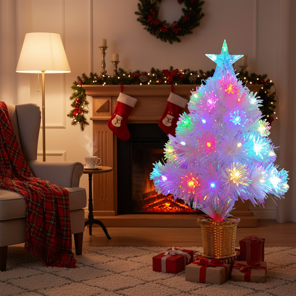 High Quality 1.5FT/55T USB LED White Christmas Tree with Snowflake Accessory 4ft Artifical Christmas Tree Decorated Hinged X'Mas