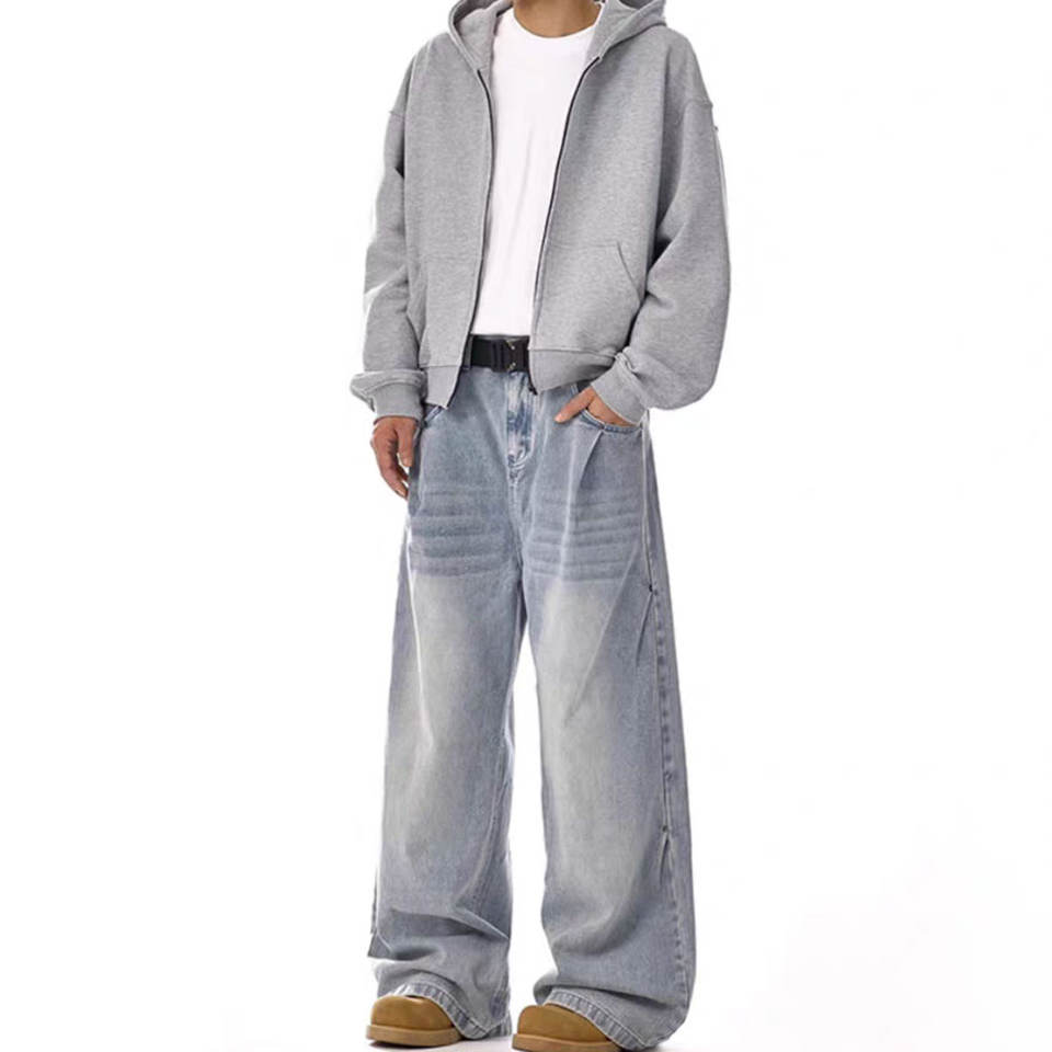 High Quality 100% Cotton 14 oz Denim Baggy Jeans for Men Custom Light Blue Acid Washed Straight Loose Fit Hip Hop for Autumn