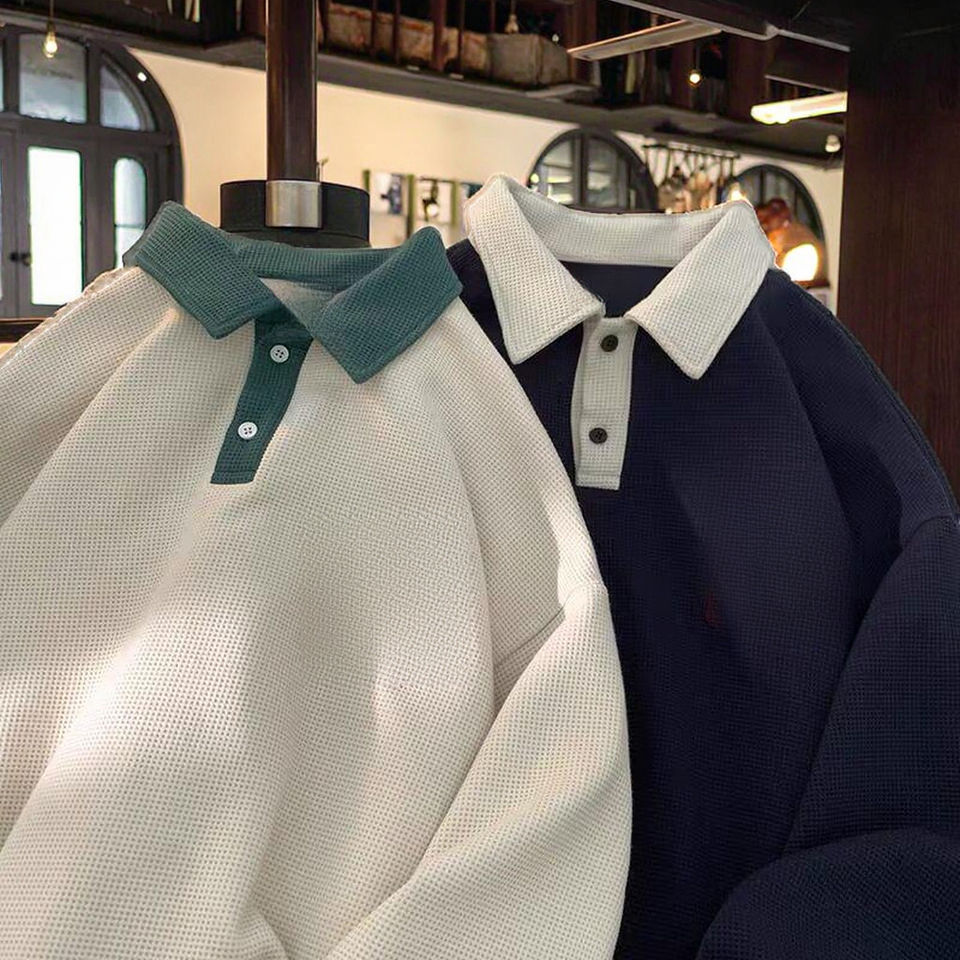 Felpa da uomo in cotone 100% di alta qualità per Polo a maniche lunghe con motivo solido invernale felpa traspirante tinta unita