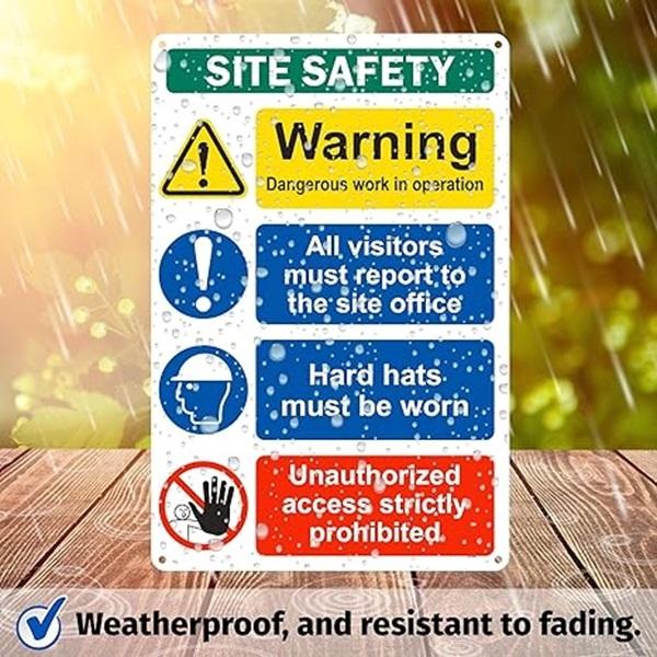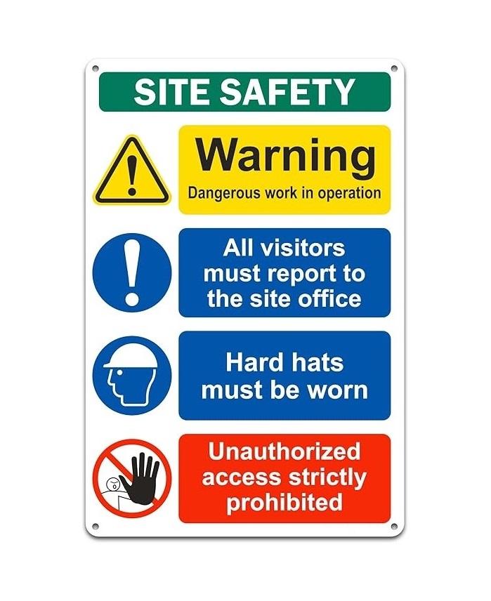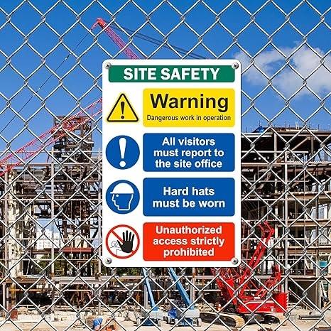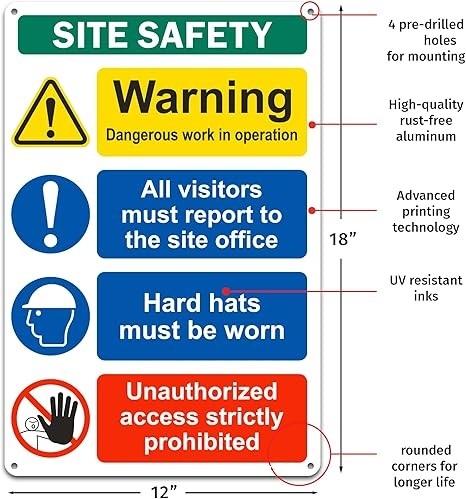 Cartello di Sicurezza per Cantieri Edili di Alta Qualità 30x45 cm in Alluminio Antiruggine - Testo Grassetto - Facile Installazione