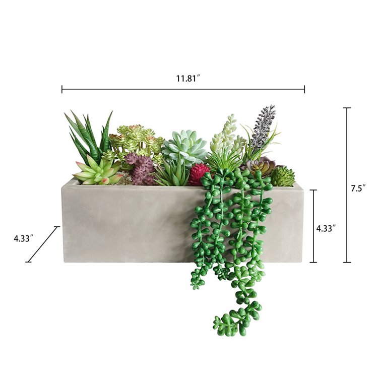 Set di 13 Piante Succulente Artificiali Assortite di Alta Qualità in Vaso di Cemento Rettangolare Fatto a Mano, Ecologico e Rustico