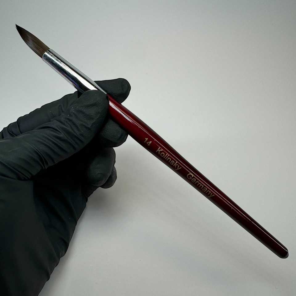 Alta Qualità # Pennello per Unghie Acriliche in Pelo di Kolinsky 14, Forma Ovale, Morbido, Ideale per Principianti e Sessioni di Pratica, Confezione in Scatola