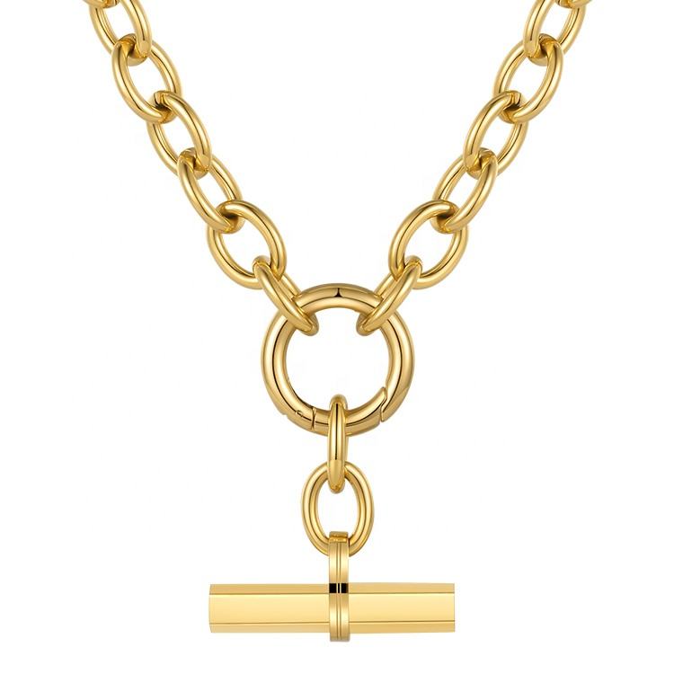 High Quality 18K Gold Plated Stainless Steel Jewelry Design Necklace Pendant Thick Chain Hip Hop Rock Necklace P213232