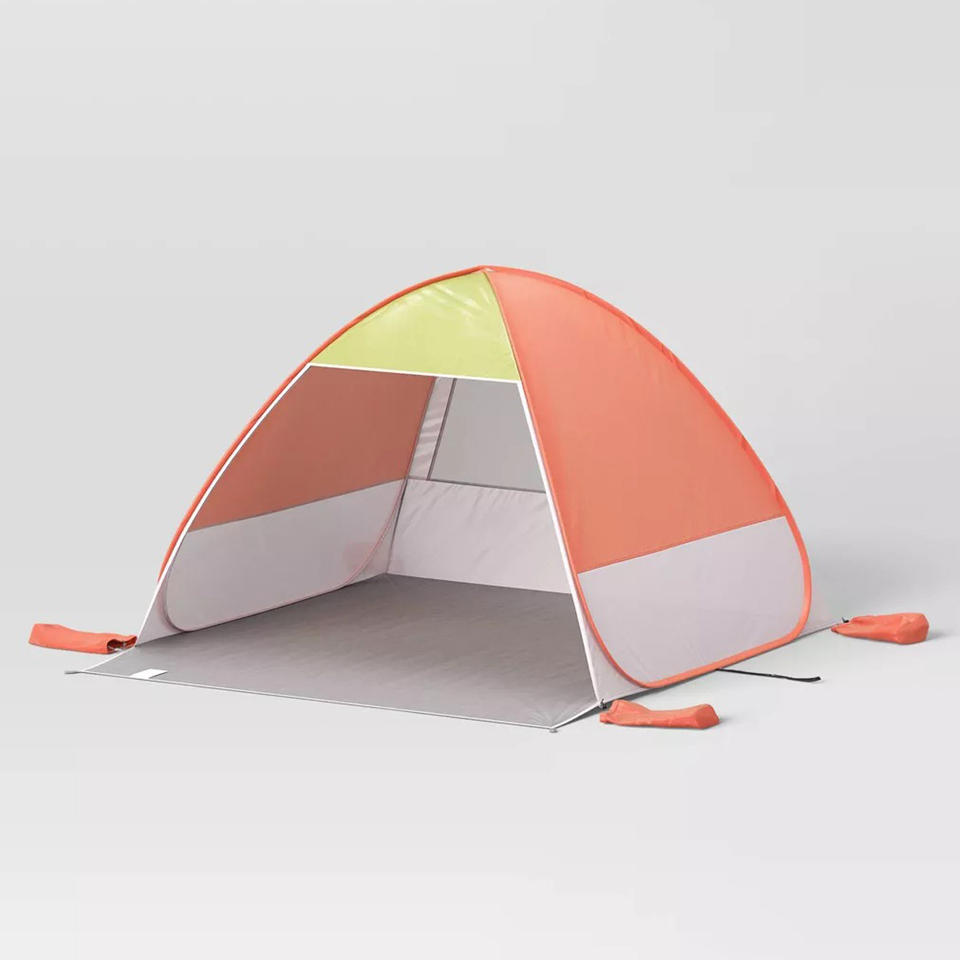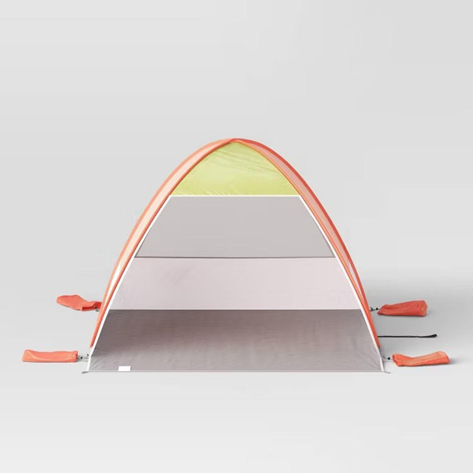 Di alta qualità 2 persone facile da impostare UPF 50 + spiaggia riparo 100% poliestere rosa Pop-up spiaggia Cabana tenda con sacchetti di sabbia